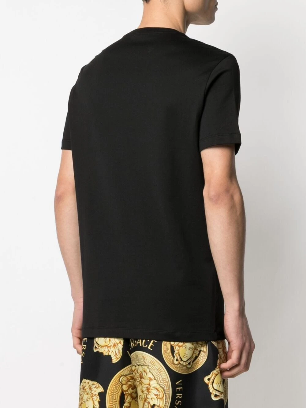 Tricot point jersey, logo imprimé à la poitrine, encolure ras du cou, manches courtes, ourlet droit. Couleur : noir. Matière : coton.