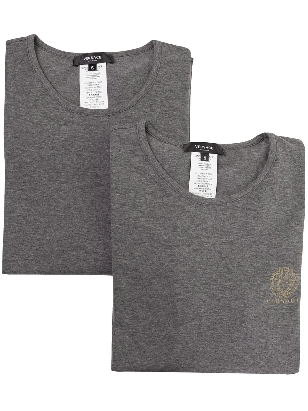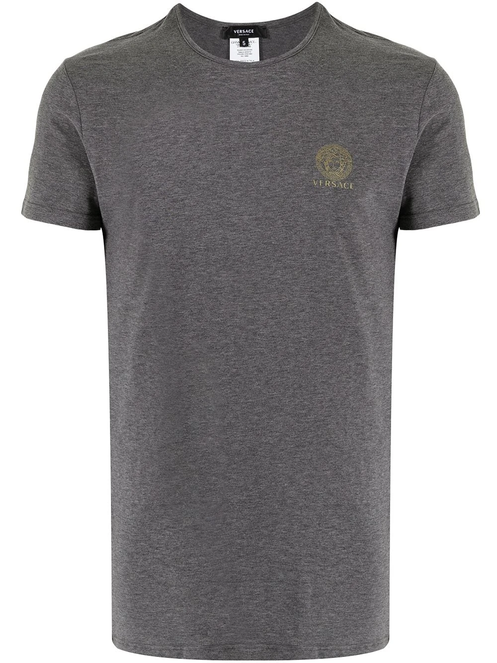 Encolure ronde, manches courtes, motif Medusa, ourlet droit. Couleur : gris.