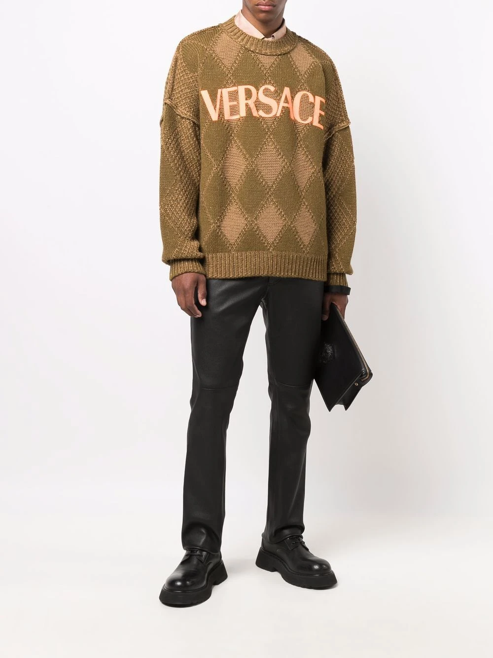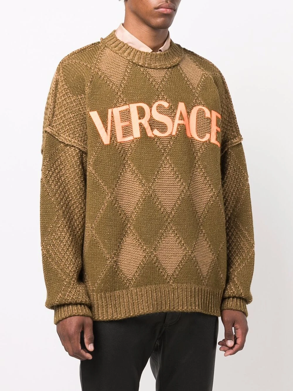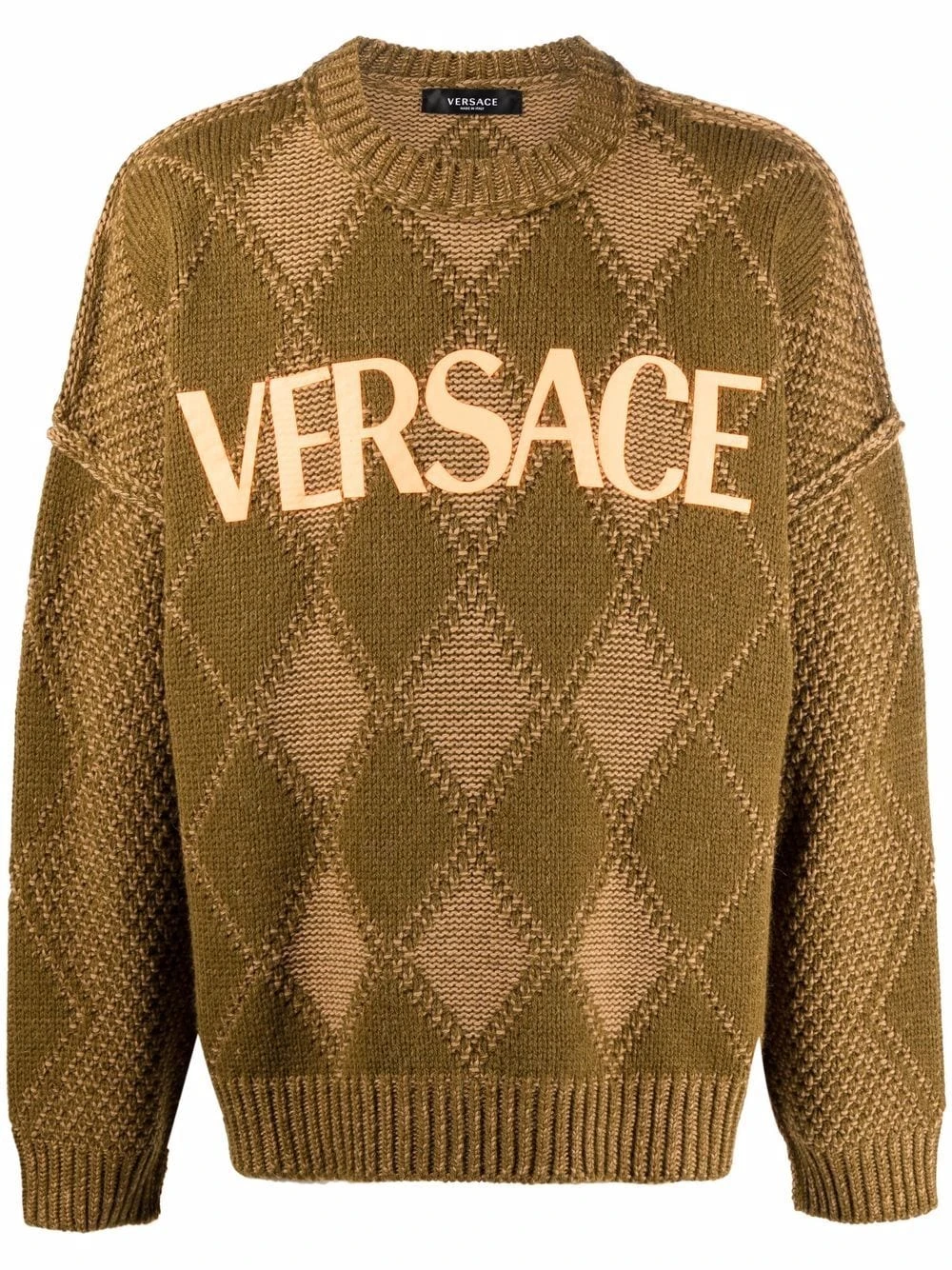 Motif losange, appliqué logo, détail nervuré, encolure ronde, manches longues.