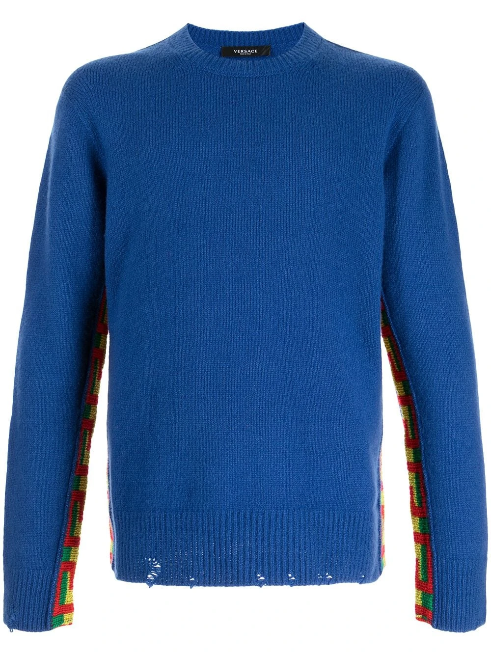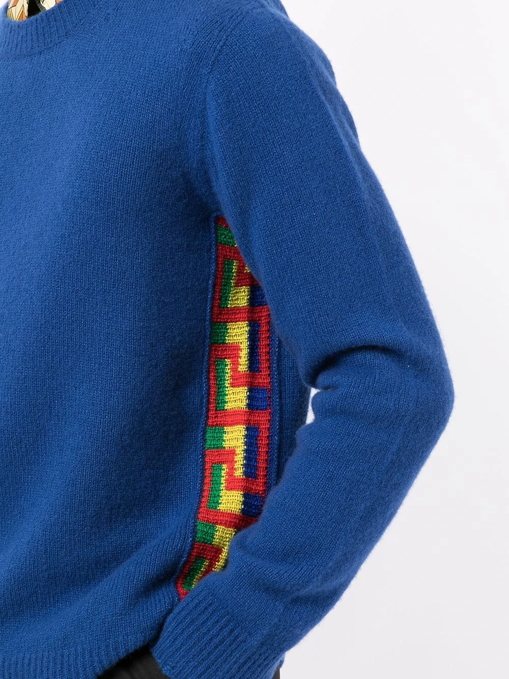 Maille intarsia, effet usé, encolure ras du cou, manches longues, poignets nervurés, ourlet nervuré.