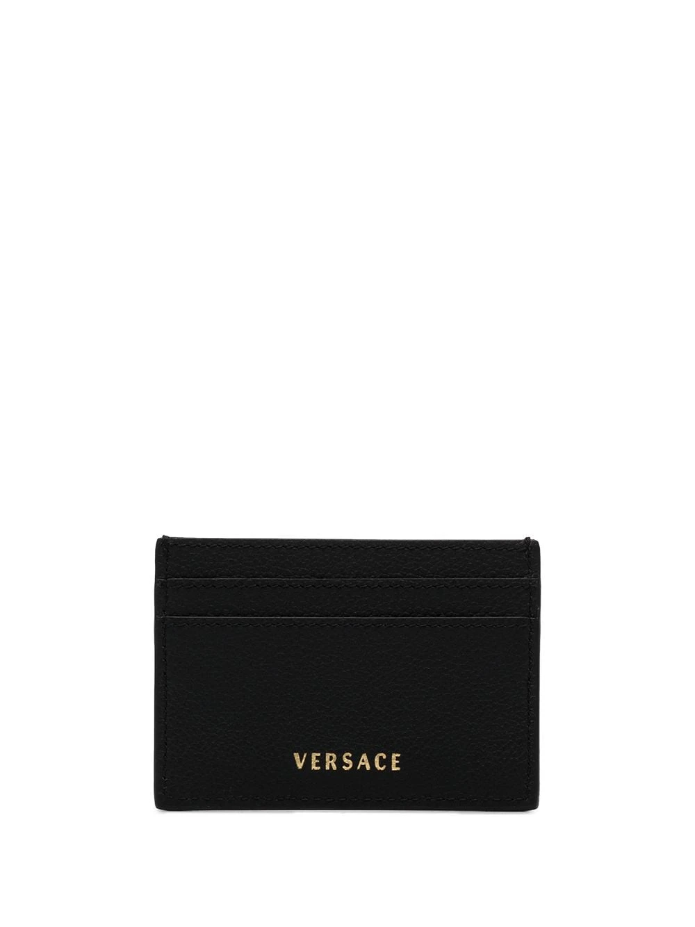 Motif Medusa, fentes pour carte, logo doré. Couleur : noir. Matière : cuir.