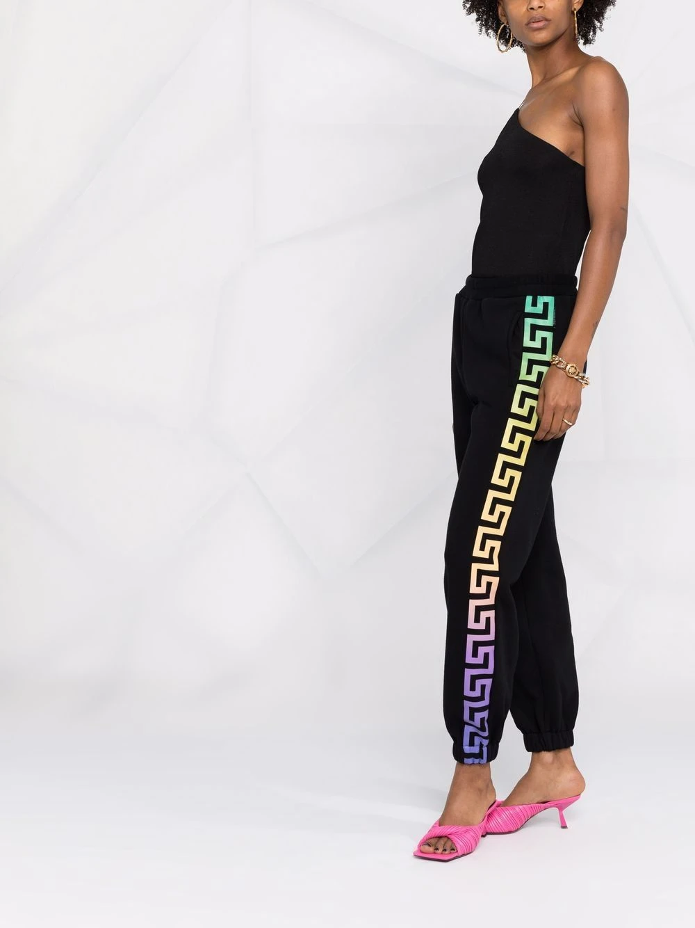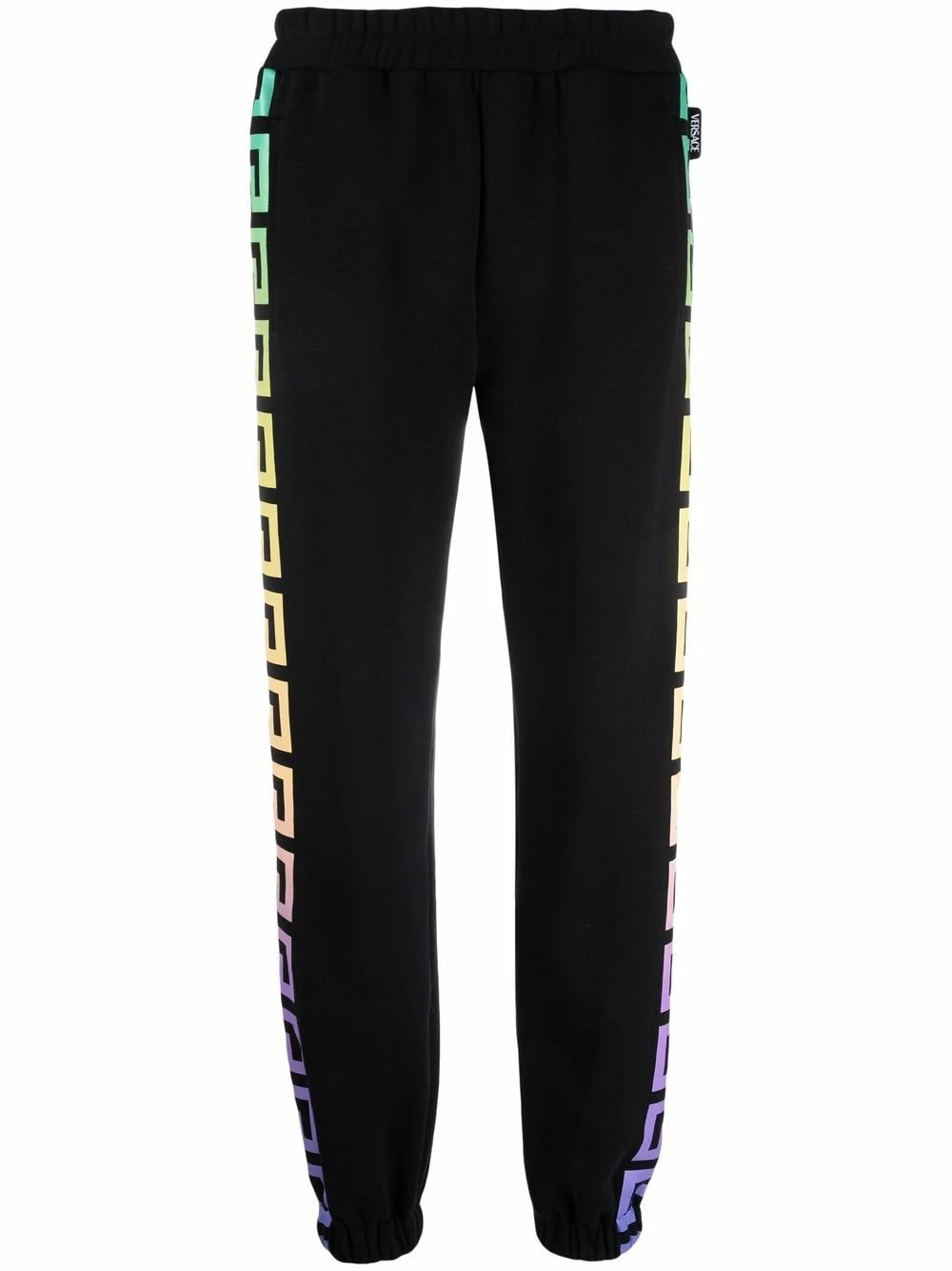 Détail Greca signature, poches latérales fendues, coupe fuselée. Couleur : noir. Matière : coton.