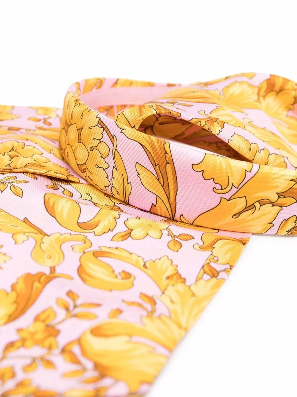 Modèle bicolore, motif baroque, fermeture à nouer sur les côtés.