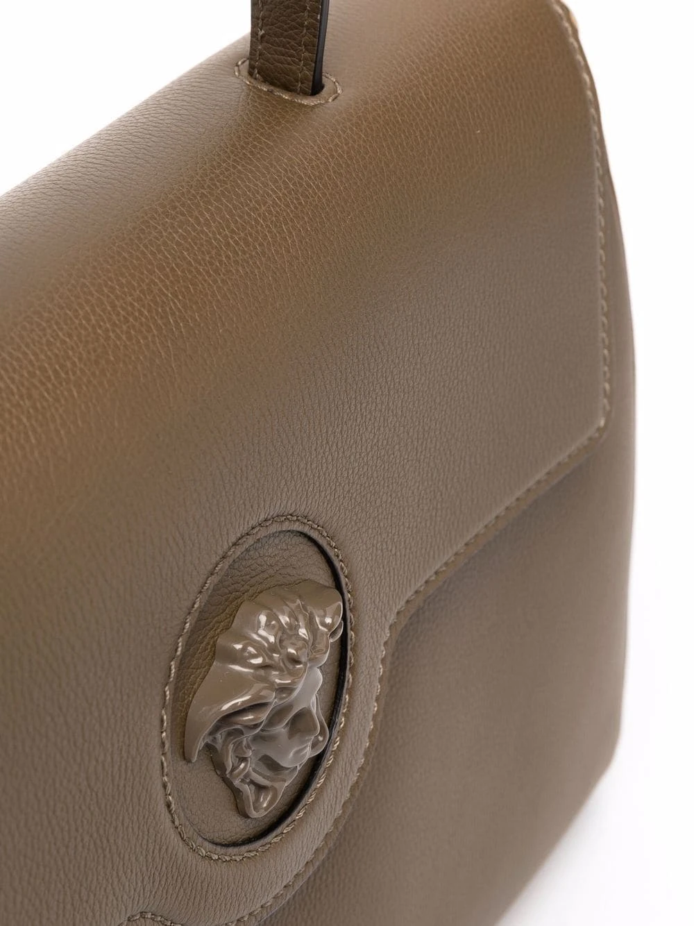 Motif Medusa, logo doré, détails de chaînes, anse arrondie, bride porté épaule détachable, rabat sur le dessus à fermeture magnétique. Matière : cuir.