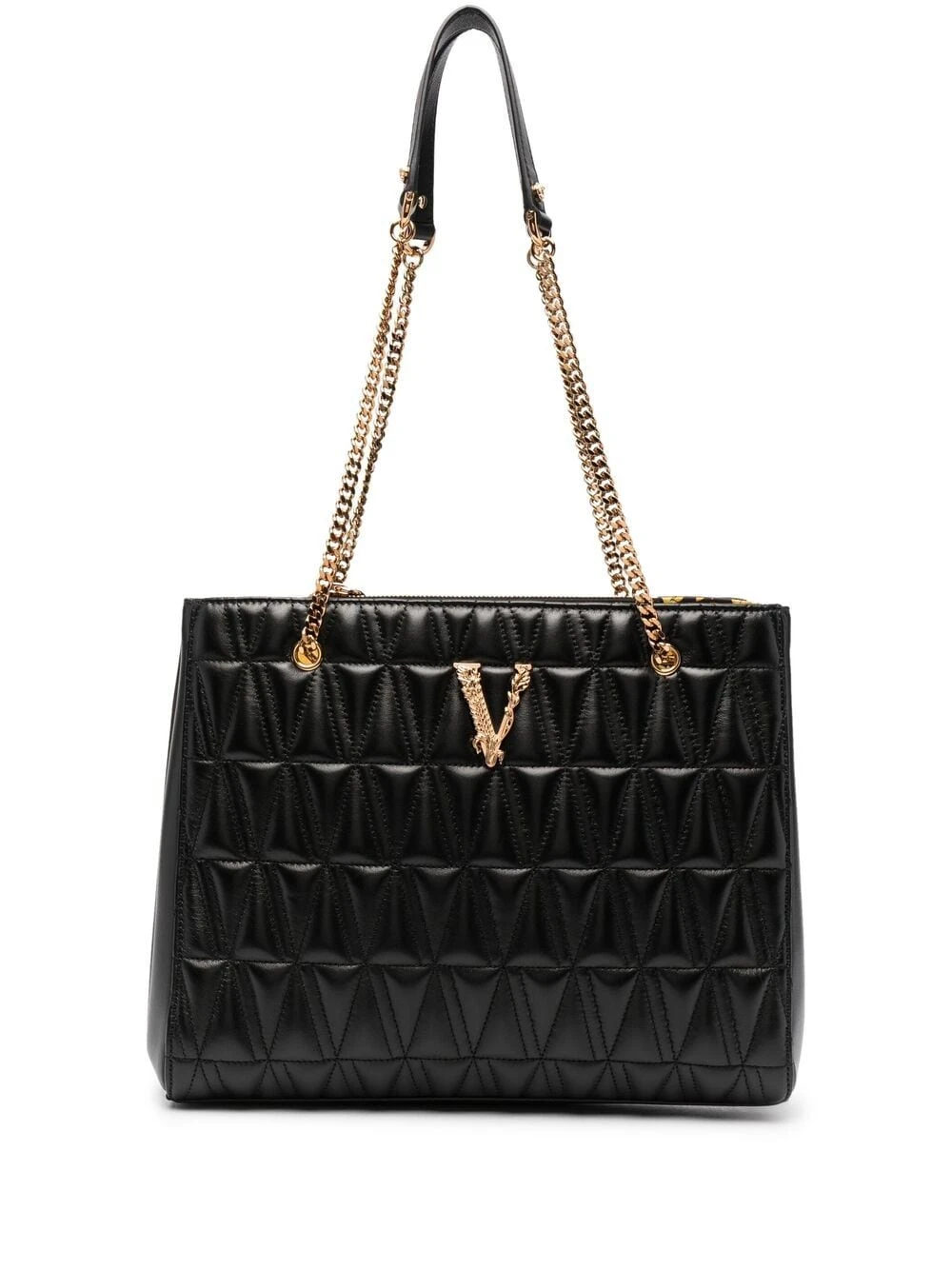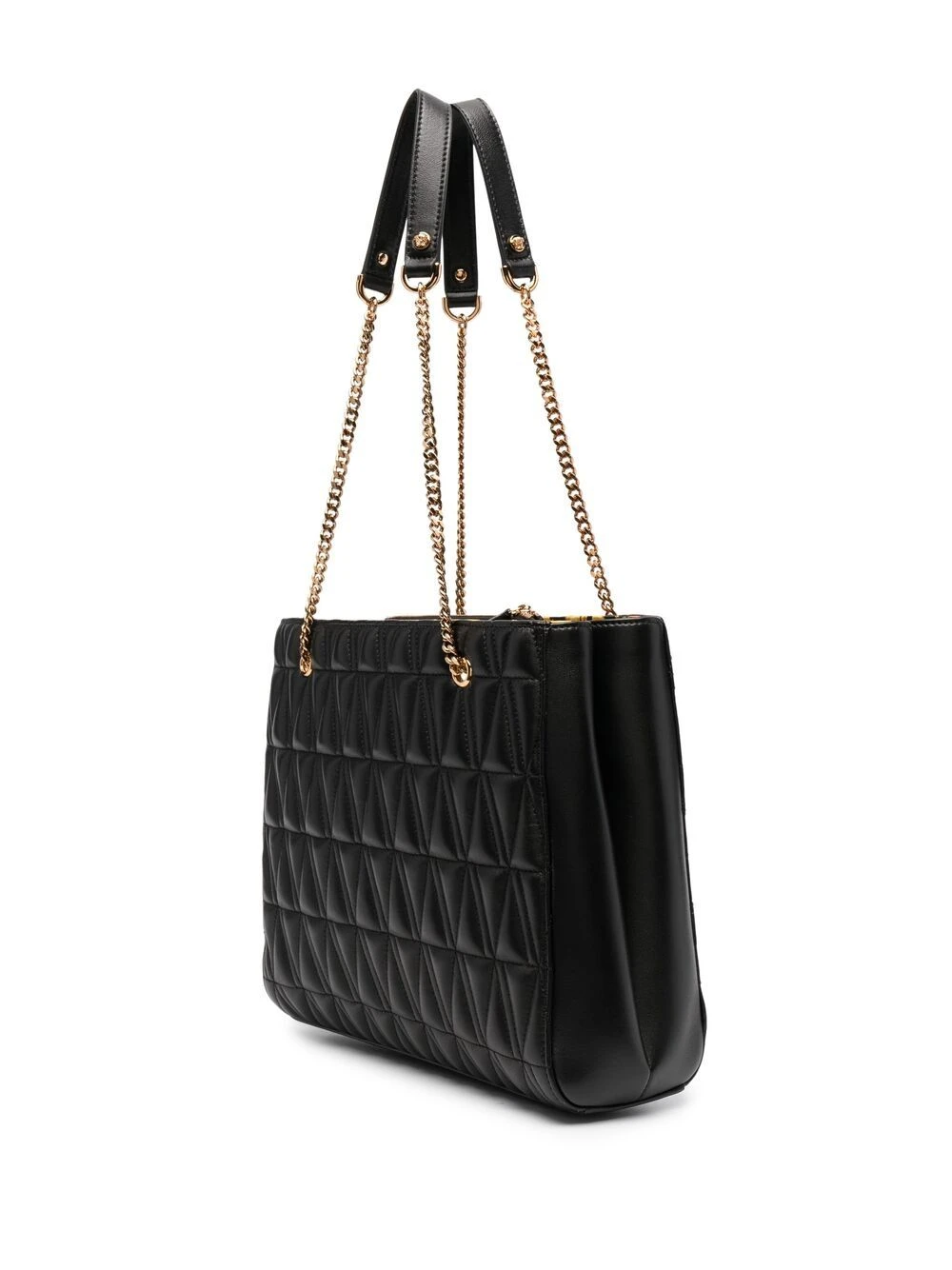 Plaque logo dorée, design matelassé, bride porté épaule en cuir et maillons de chaîne, compartiment intérieur, poches intérieures zippées. Couleur : noir. Matière : cuir.