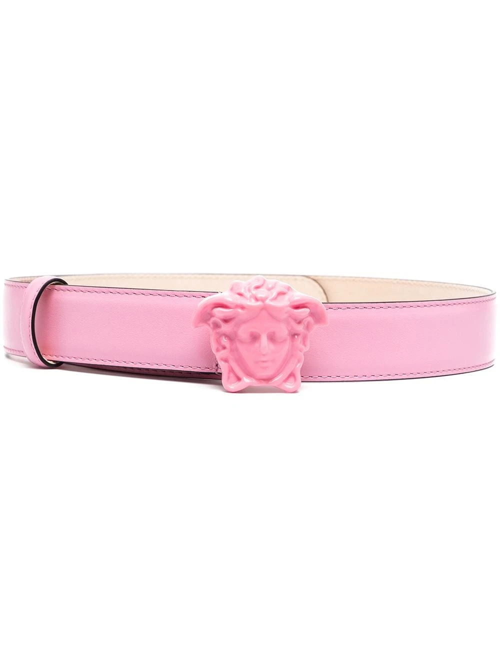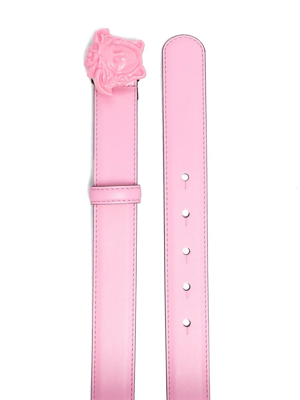Motif Medusa, coutures ton sur ton, taille ajustable. Couleur : Rose. Matière : cuir.