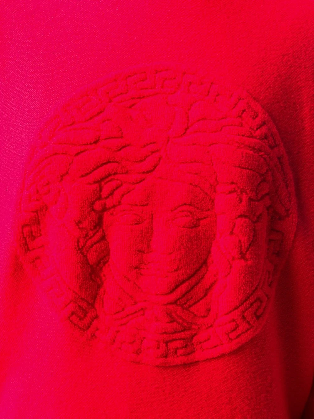 Capuche à lien de resserrage, motif Medusa, manches longues, coupe ample. Couleur : rouge. Matière : coton.