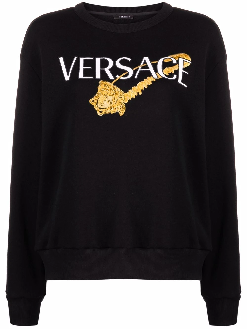 Détail d’épingle à nourrice, logo imprimé à la poitrine, encolure ras du cou, manches longues. Couleur : noir.