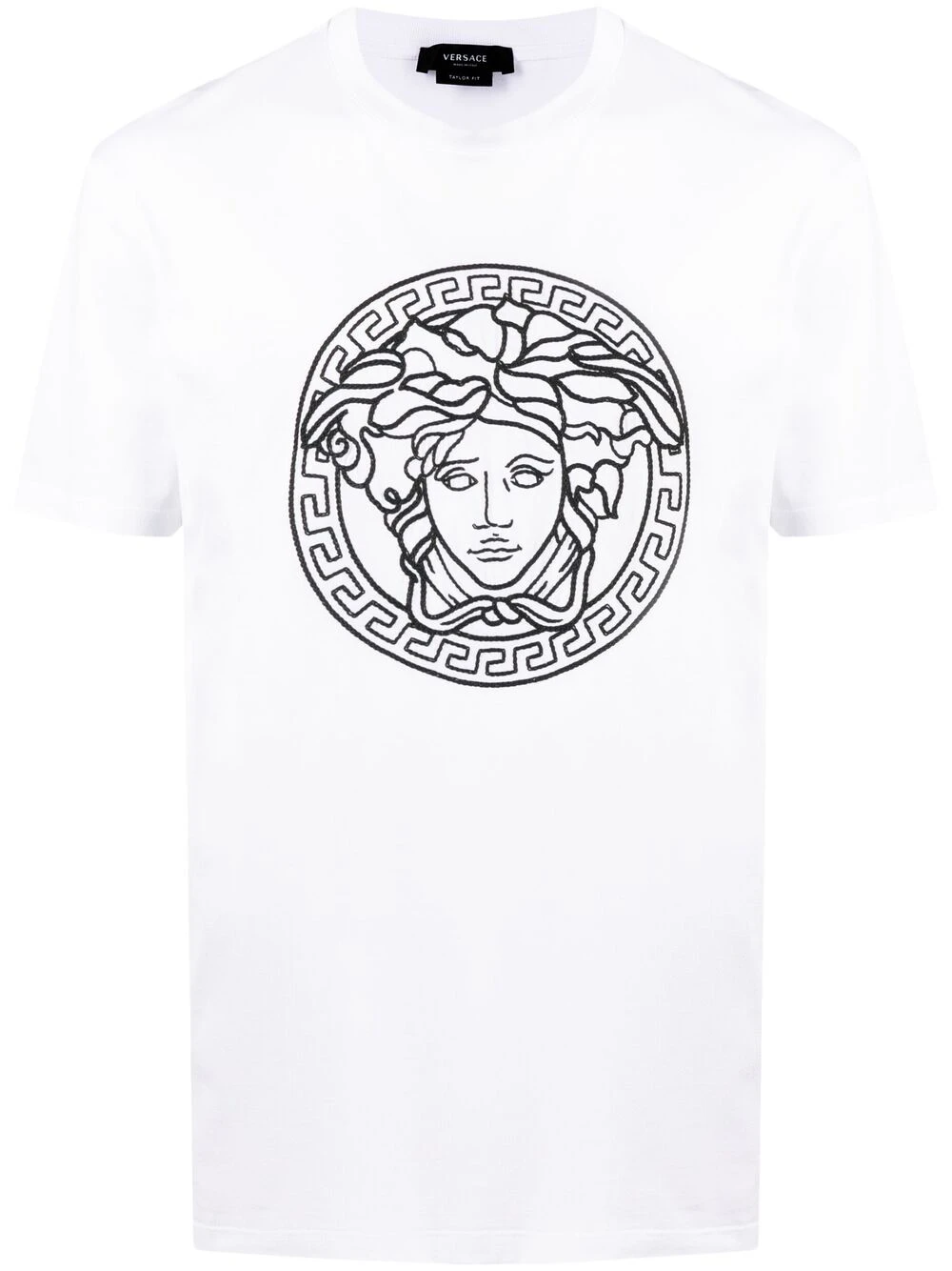Motif Medusa, modèle bicolore, encolure ronde, manches courtes. Couleur : blanc. Matière : coton.