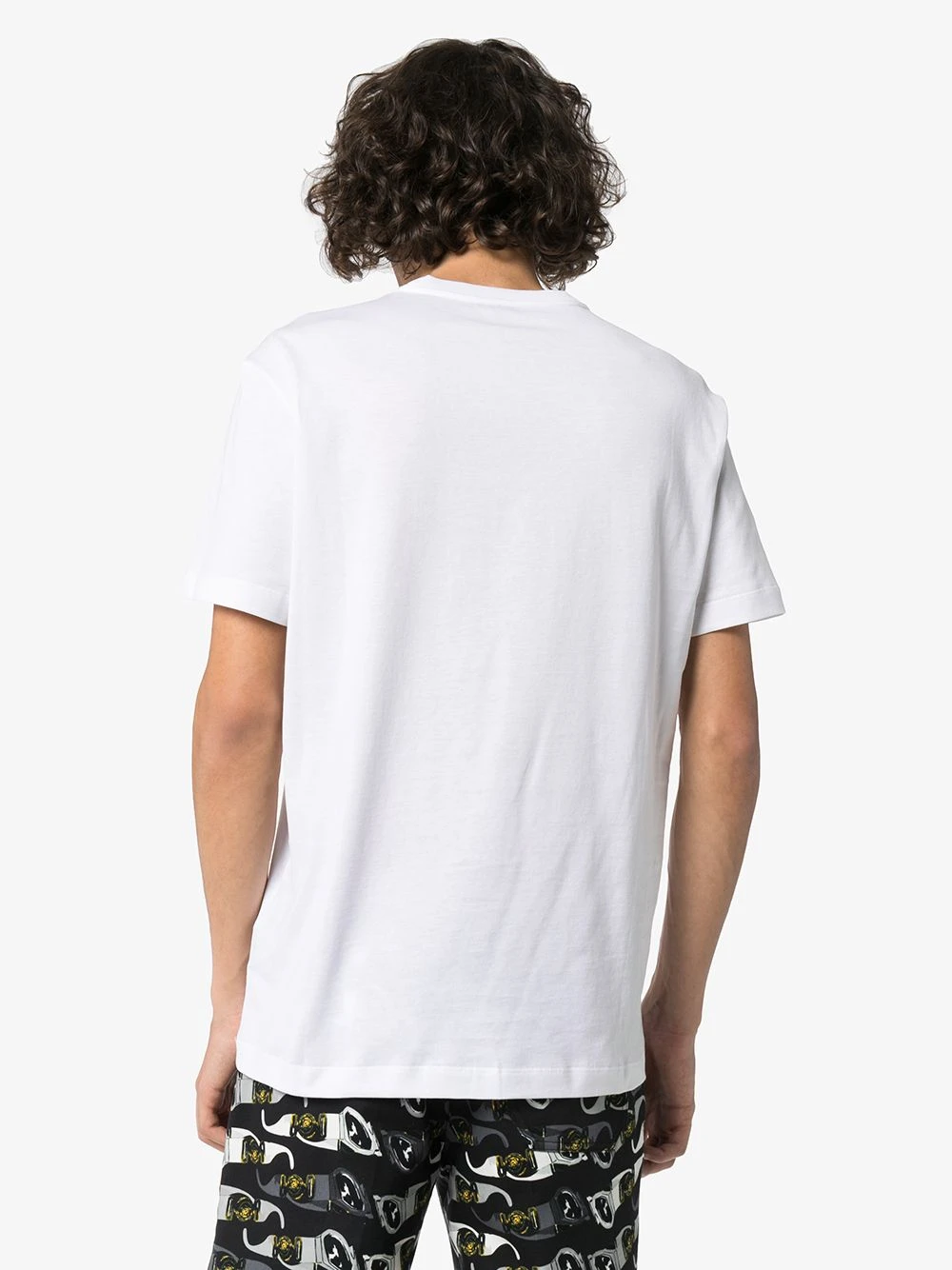 T-shirt à logo imprimé graphique en coton Versace avec encolure ronde nervurée, manches courtes et aspect souple. Couleur : blanc.