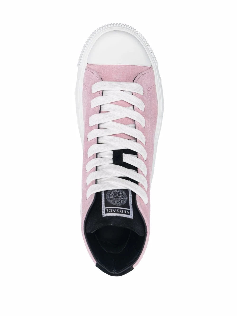 Bout rond, fermeture à lacer sur le devant, patch logo sur le côté, languette à patch logo, détail Greca embossé signature, semelle plate.