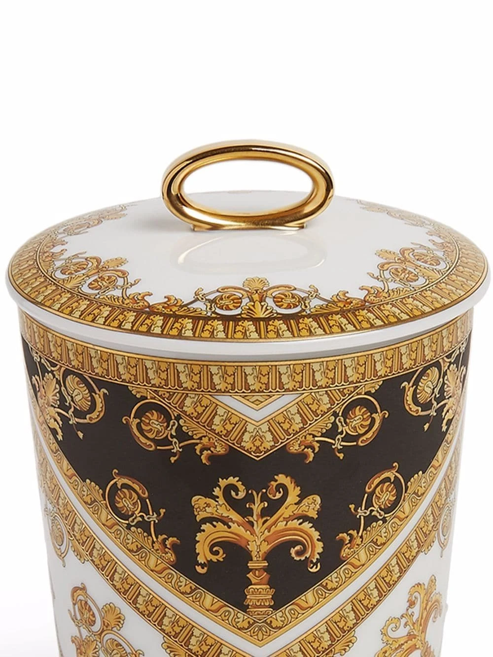 Motif baroque, durée de combustion de 60 heures. Couleur : blanc.
