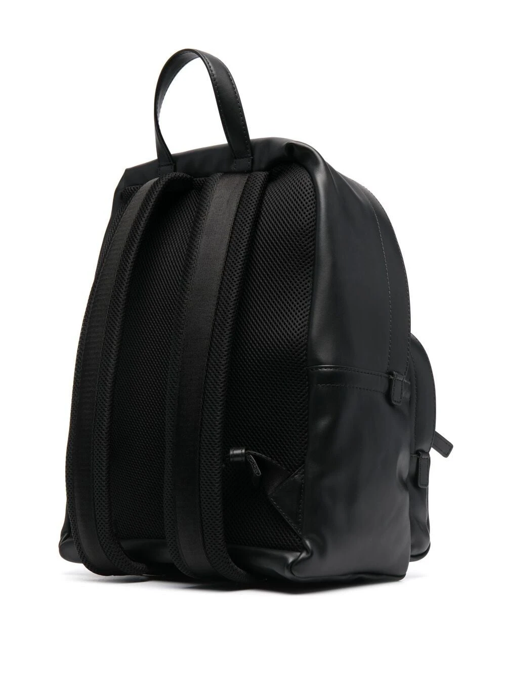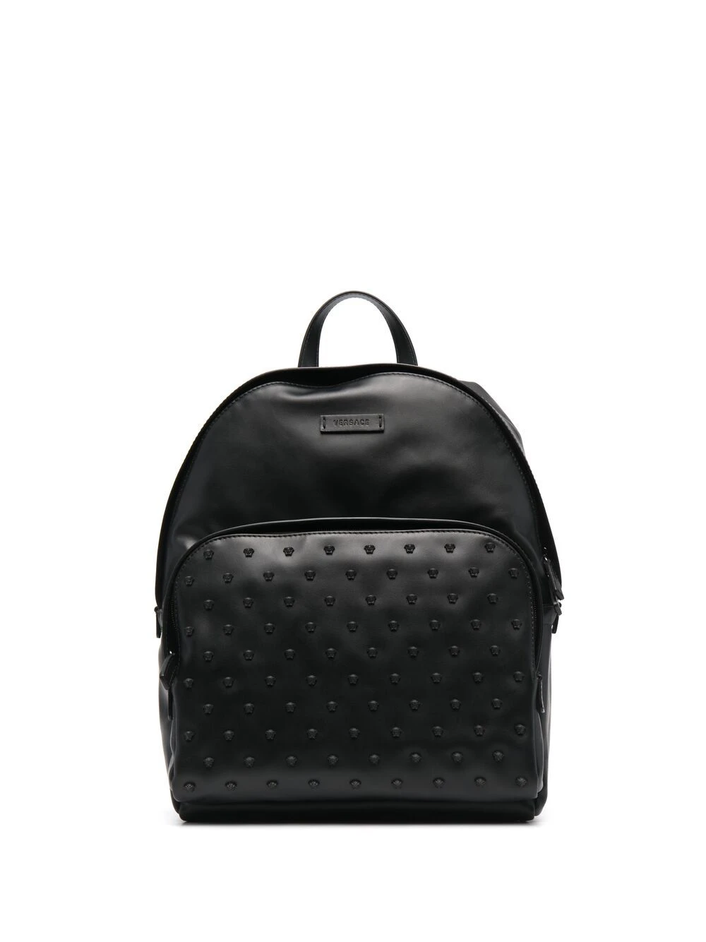 Détail Medusa, patch logo sur le devant, fermeture zippée sur le dessus, compartiment zippé sur le devant, anse arrondie, deux brides porté épaule ajustables. Couleur : noir.